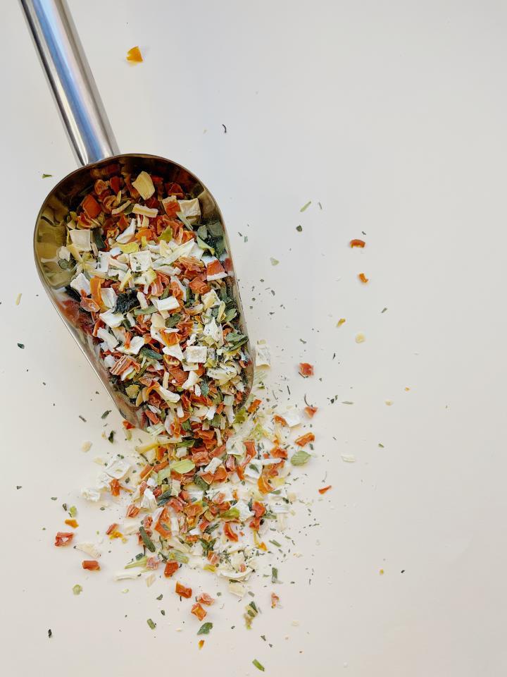 Ingredientes: Zanahoria, cebolla, chirivia, perejil, apio, col blanca. (Deshidratados)